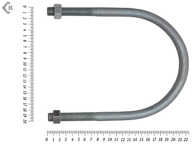 Хомут U-образный представляет собой изогнутый по определенному диаметру трубы стержень, концы которого снабжены метрической резьбой. Предназначен для фиксации труб при монтаже коммуникационных сетей. С его помощью можно производить эффективное закрепление к рабочему основанию стержней, электротехнического силового кабеля и прочих изделий круглого сечения. Жесткая фиксация реализуется за счет затягивания гаек на резьбовых концах стержня.