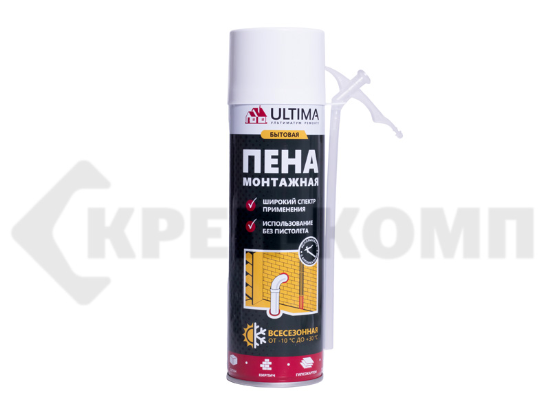 Пена монтажная бытовая, полиуретан. 340мл, ВСЕСЕЗОННАЯ, от -10 °С до +30 °С, ULTIMA (шт.)