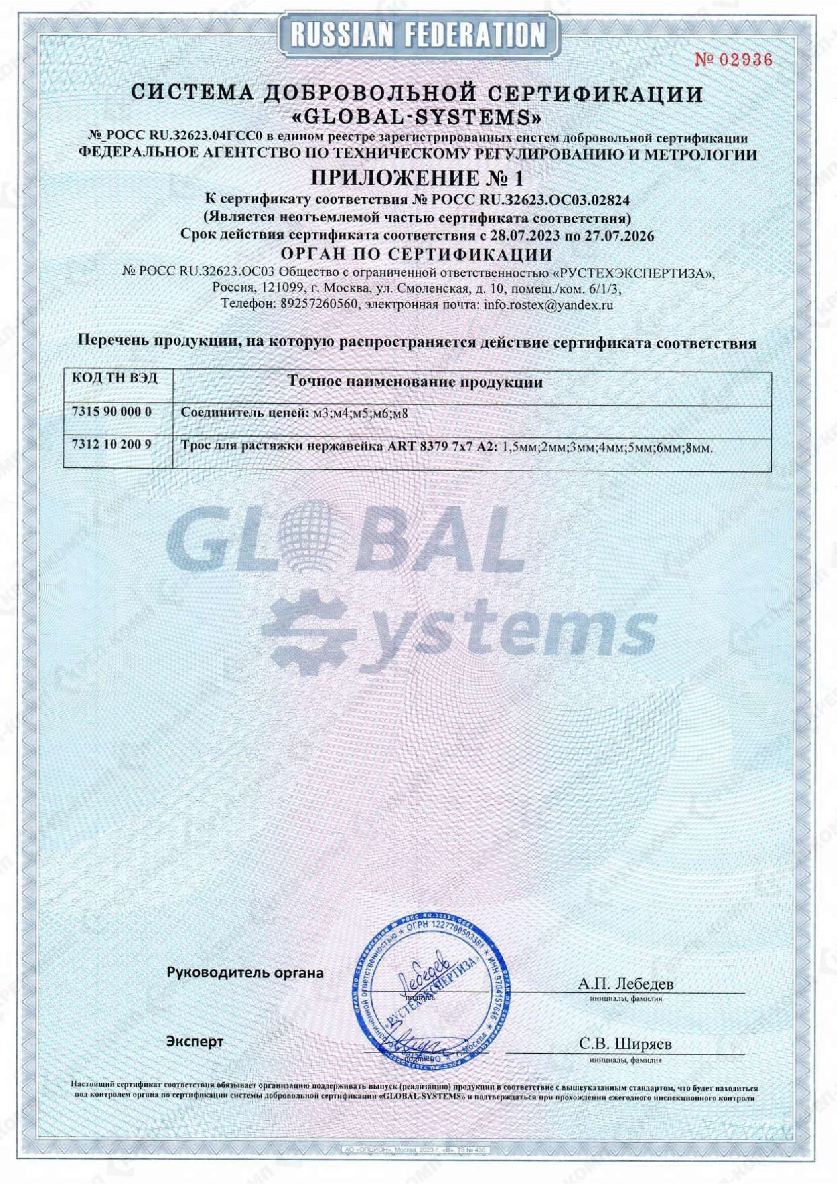 • Сертификат трос скан оригинала 2023